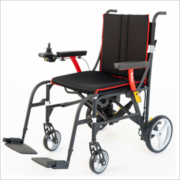 The Feather Power Chair weighs only 33 lbs. Making it the lightest power wheelchair on the planet. The seat folds to 13” and the back folds down to 28” making it small enough to fit into any car or coat closet. It has a top speed of 4 MPH – it can keep up with a brisk walk.